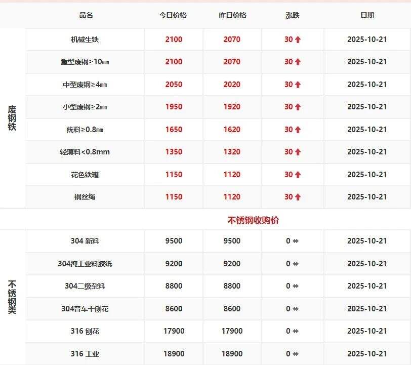 2025年10月21日江西保太有色金屬集團有限公司廢鋼、廢不銹鋼報價