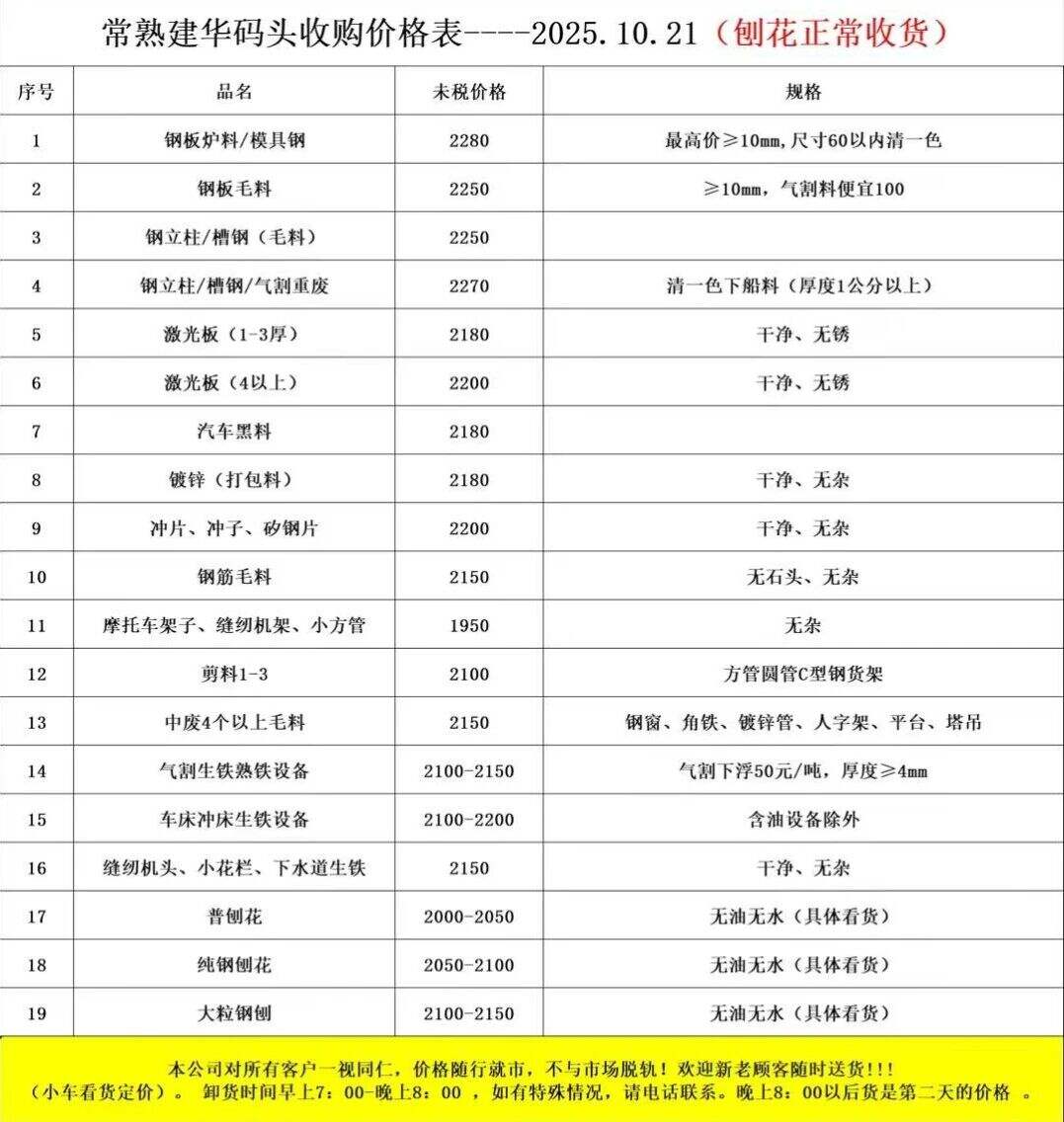 2025年10月21日常熟建華碼頭收購價格表