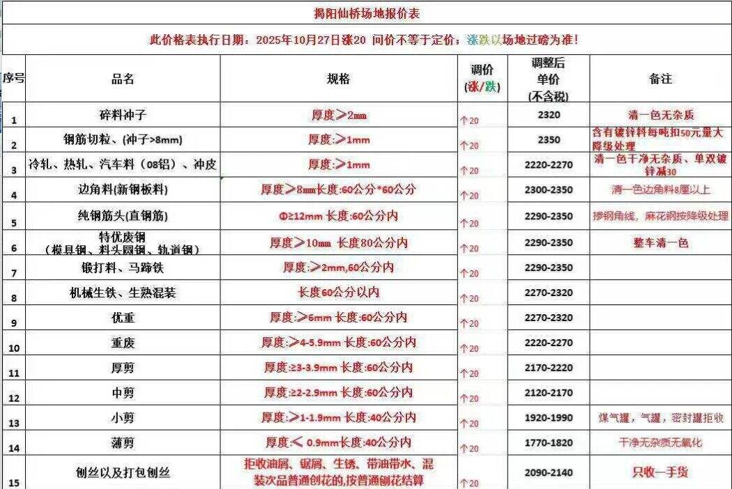 2025年10月27日揭陽(yáng)仙橋場(chǎng)地報(bào)價(jià)上調(diào)