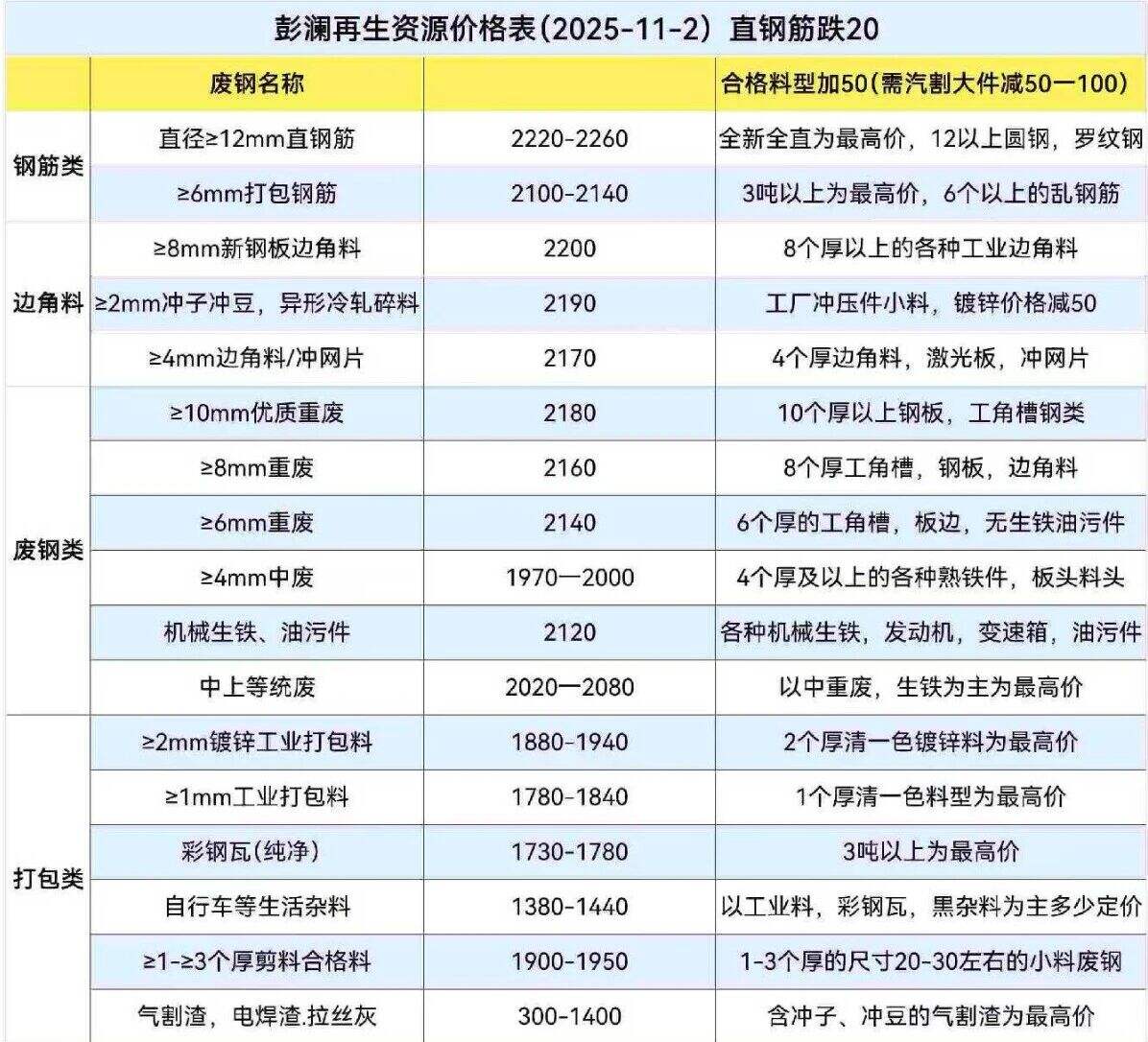 2025年11月2日安徽省桐城市彭瀾再生資源報(bào)價(jià)調(diào)整