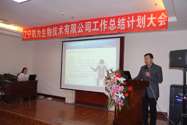 2017年1月6日下午,寒冷冬日,暖陽(yáng)高照,美麗的渤海之濱錦州,遼寧凱為生物技術(shù)有限公司2016年工作總結(jié)和2017年工作計(jì)劃大會(huì)在華信大廈會(huì)議廳隆重舉行,遼寧凱為自2005年創(chuàng)建以來(lái),歷時(shí)11年的發(fā)展歷程,我們積累了經(jīng)驗(yàn),也展示了多年的成果,展望2017年未來(lái)的發(fā)展重點(diǎn)和方向,現(xiàn)在,凱為人踏著夢(mèng)想而來(lái),滿載而歸。未來(lái),凱為人堅(jiān)定地為公司添磚加瓦、壘筑高臺(tái),讓夢(mèng)想更加豐滿,讓基業(yè)更加長(zhǎng)青。整個(gè)會(huì)議歷時(shí)三個(gè)小時(shí),包括總經(jīng)理王鐵良先生作年度工作總結(jié)、計(jì)劃報(bào)告,銷售部總經(jīng)理趙福寬先生作銷售部年度工作總結(jié)、計(jì)劃報(bào)告,優(yōu)秀員工表彰等環(huán)節(jié)。會(huì)議進(jìn)行中,掌聲數(shù)次響起,整個(gè)會(huì)場(chǎng)始終洋溢著振奮、進(jìn)取、熱烈的氣氛,精彩紛呈,亮點(diǎn)鮮明。