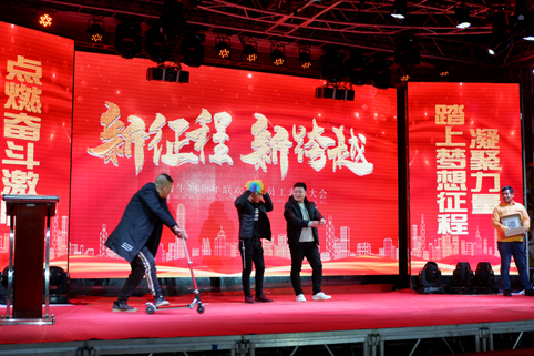 在聯(lián)歡會的現(xiàn)場,華麗舞臺燈光璀璨,背景制作喜氣祥和,一派喜迎新春的美好盛況,那一首首悅耳動聽的歌曲,那一段段優(yōu)美豪放的舞蹈,那一個個風(fēng)趣搞笑的互動小品.......在舞臺上傾情巨獻(xiàn),精彩紛呈,掌聲與喝彩此起彼伏,現(xiàn)場氣氛熱烈、喜氣、祥和,凱為人的魅力與風(fēng)采在這一刻光芒四射,凱為人的才藝在這一刻八仙過海??!