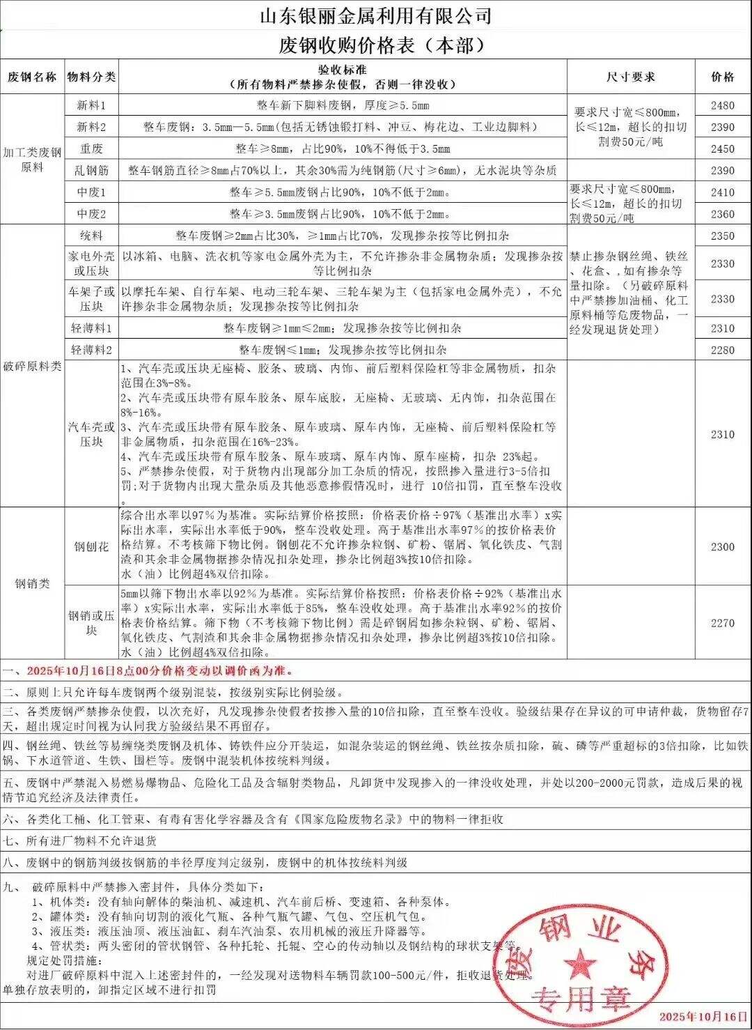 **月**日**時(shí)山東銀麗金屬?gòu)U鋼價(jià)格下調(diào),詳見(jiàn)價(jià)格表