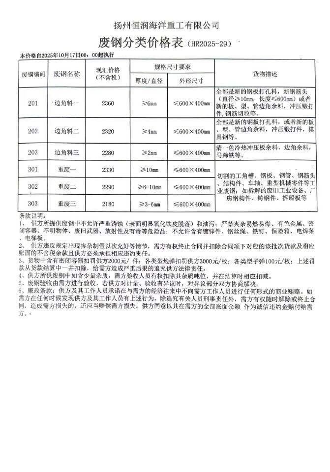 **日揚(yáng)州恒潤(rùn)廢鋼跌**,邊角料一****,邊角料二****,邊角料三****,重廢一****,重廢二****,重廢三****,(不含稅)