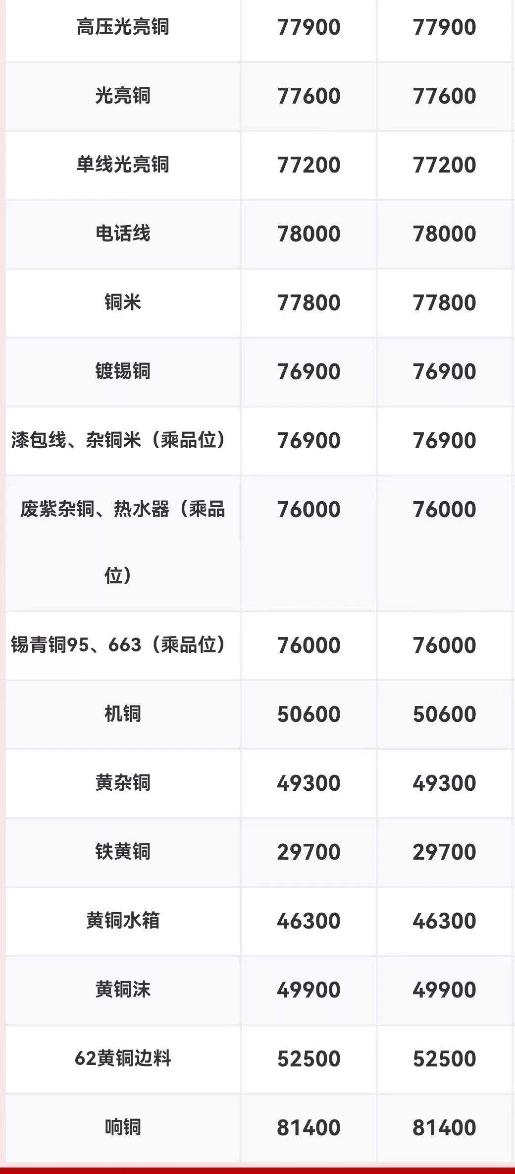 ****年**月**日江西保太有色金屬集團(tuán)有限公司廢銅報價