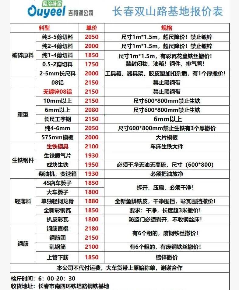 ****年**月**日江西保太有色金屬集團(tuán)有限公司廢鐵報價