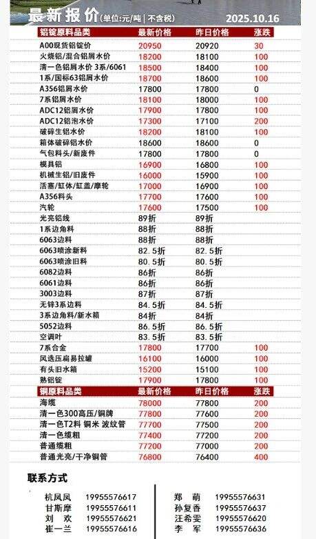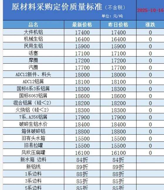 ****年**月**日江西保太有色金屬集團(tuán)有限公司廢鋁報價