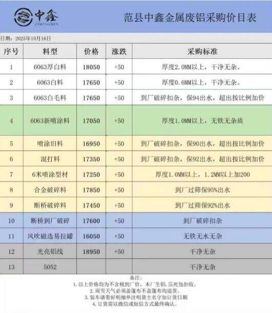 **月**日河南范縣中鑫金屬制品今日廢鋁報價