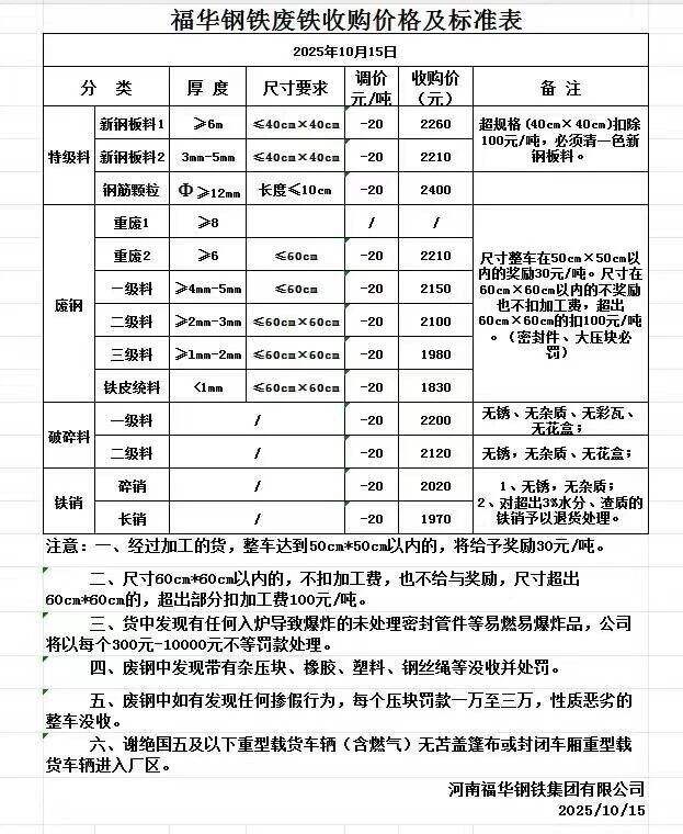 河南鄭州福華通知:明日起廢鋼暫停收購(gòu)。