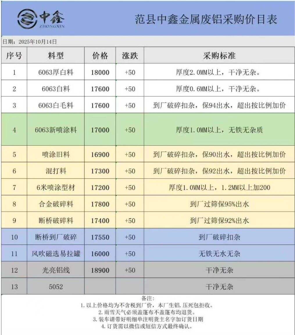**月*日河南范縣中鑫金屬制品今日廢鋁報(bào)價(jià)