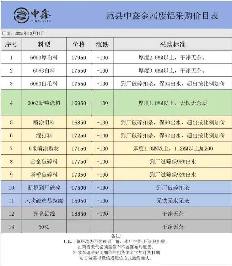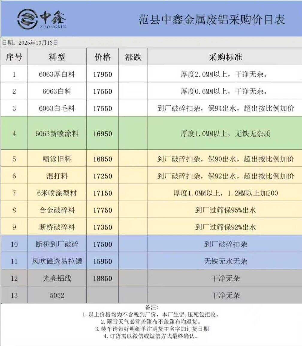 **月**日河南范縣中鑫金屬制品今日廢鋁報(bào)價(jià)