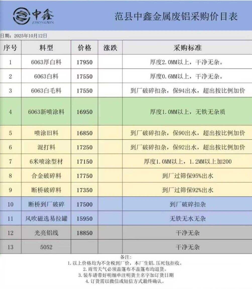 河南范縣中鑫金屬制品,*月**日今日廢鋁報(bào)價(jià)