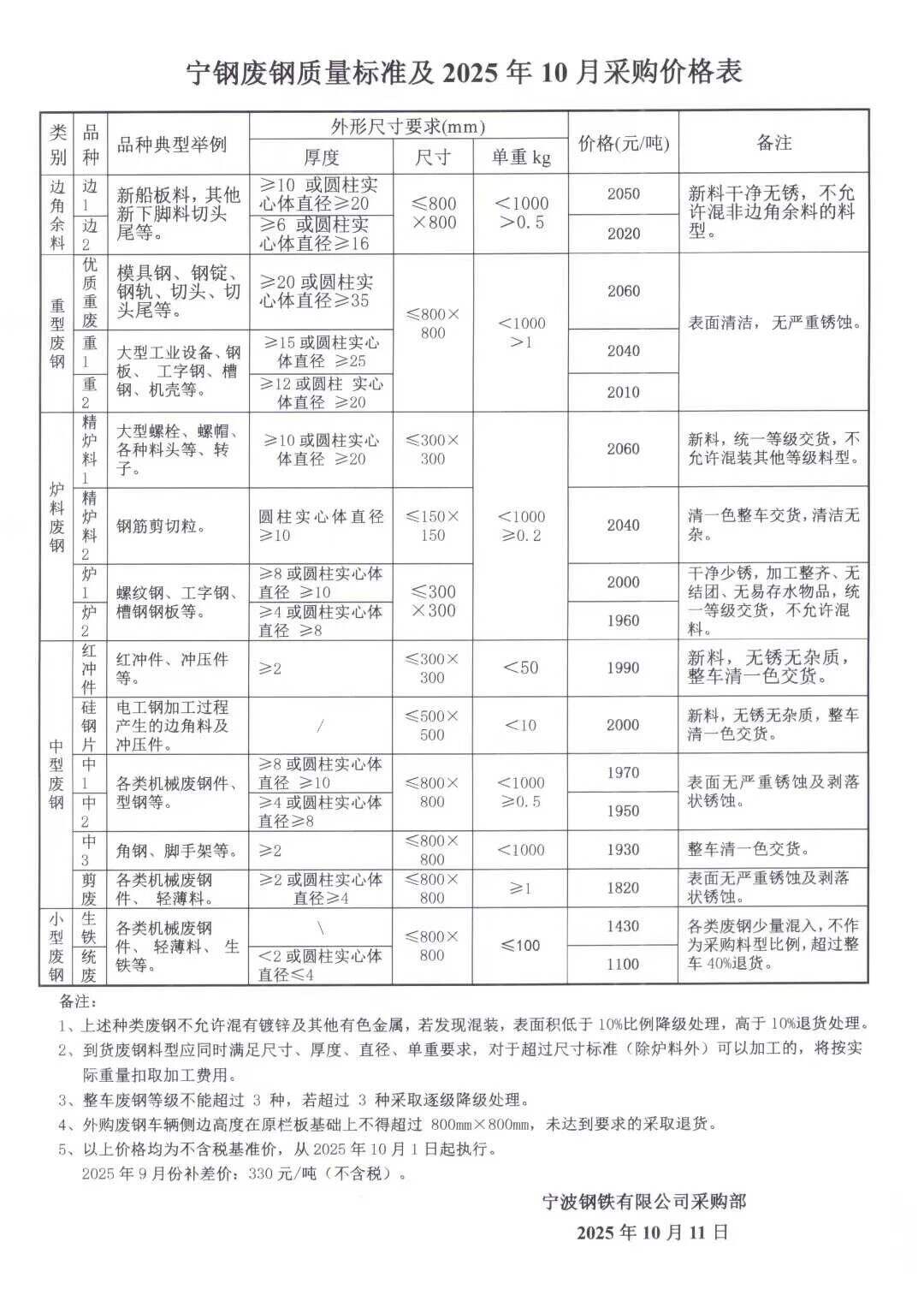 寧鋼**月基價統(tǒng)廢下調(diào)***,其余上調(diào)***,*月補差***不含稅。