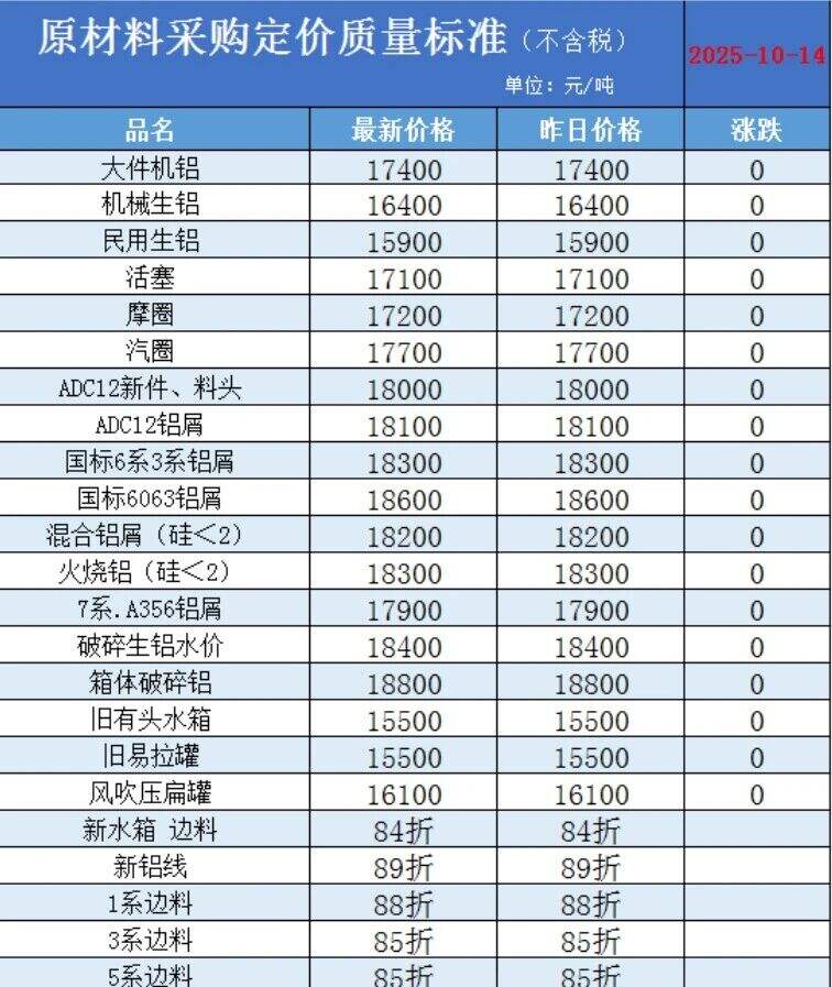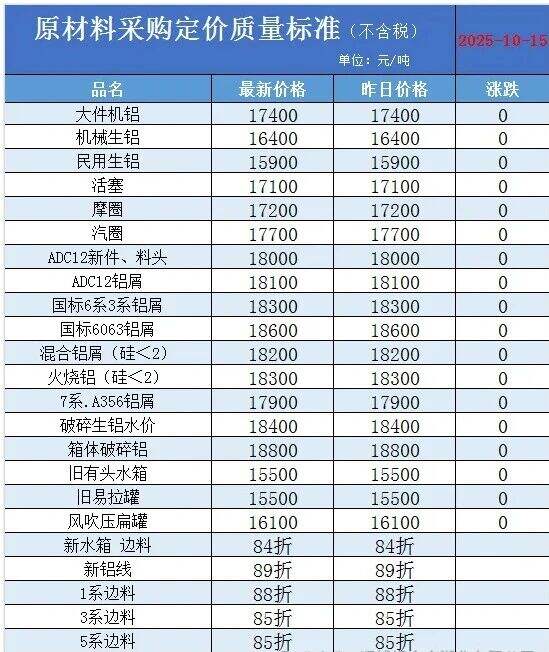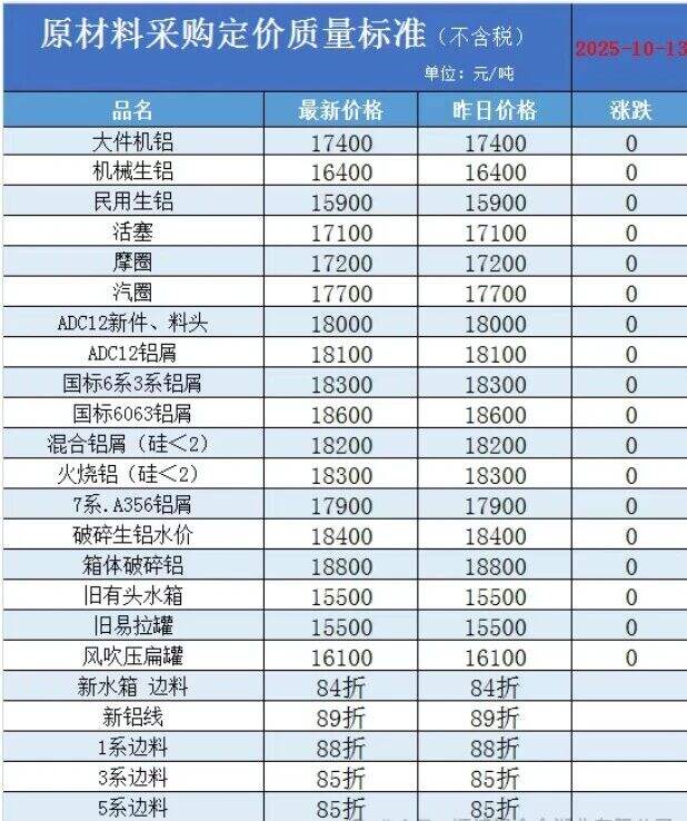 湖北新能量再生材料科技有限公司 ****年*月**號價格如下: