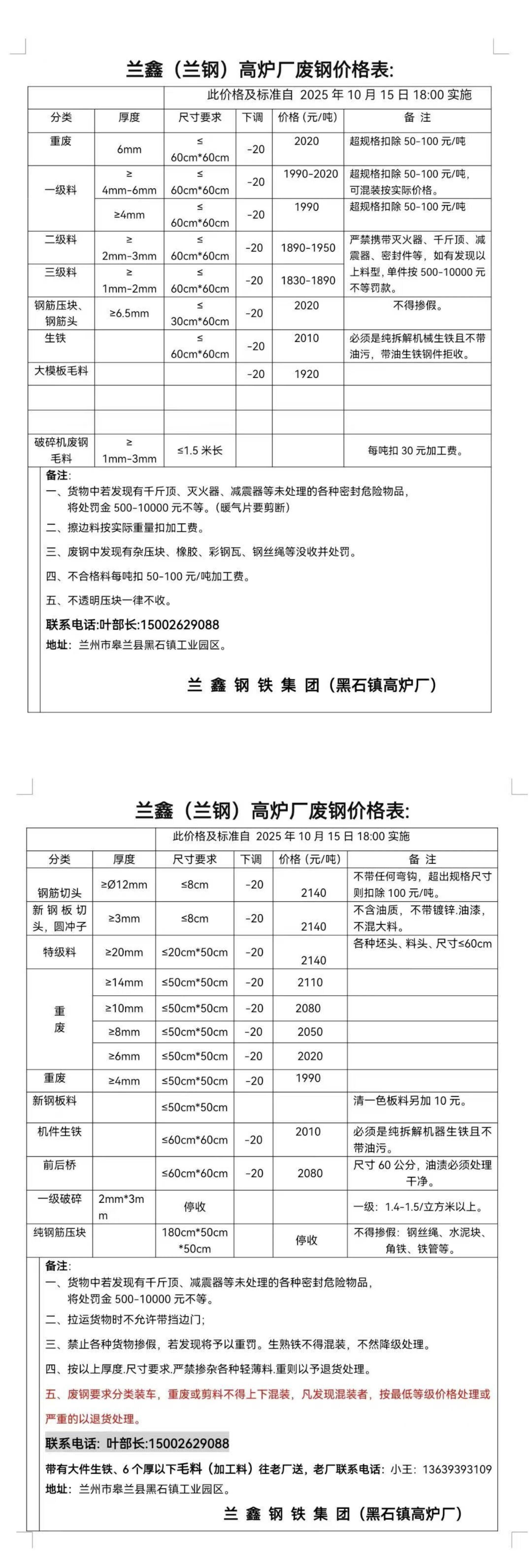 蘭鑫*月**日*:**重廢、剪料價(jià)格上調(diào)**元/噸。